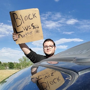 While driving home, I ran into a car protest headed downtown. Dedicated to the Black Lives Matter movement, I changed my route, quickly grabbed some cardboard, and wrote BLACK LIVES MATTER with my sharpie. Driving while my partner held the sign, we participated in the activism we still need today. Black lives matter, and will forever matter.
