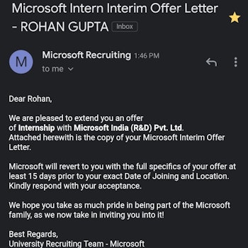 Received a Internship offer from Microsoft 🎉