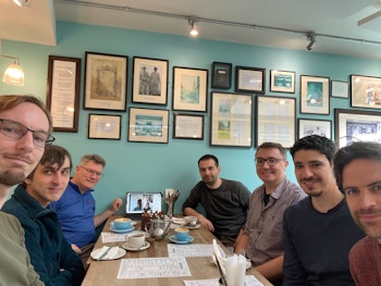 Members of Cambridge RSE past and present celebrated with coffee and cake at Fitzbillies and remotely joining research software engineers and groups around the world.
