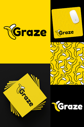 The logo design and branding I designed for Twitch streamer, Graze. They wanted to incorporate a banana within the branding somehow. I really enjoyed creating the little banana logo mark. I think it works really well. Also, it transfers well to a repeatable pattern design.