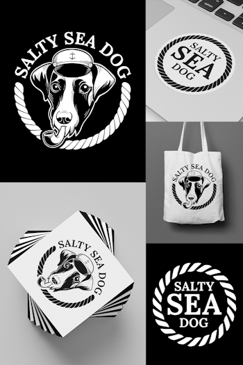 Logo design I created for Salty Sea Dog. The dog I used is actually one of our friends. She works perfectly as a salty sea dog! Illustration and responsive logo design were included in this project. The plan is to incorporate more dogs and maybe even an imposter kitty!
