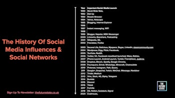 - Back for season 2: The Future state of podcast with my co-host Nick, we discussed the future state of social media (It's a great listen), a little teaser it's more about how we build our own social networks and curate smaller networks vs large groups on large social networks. The pic highlights the full journey we have been on through social media and the step changes we have lived through since the beginning (1990)