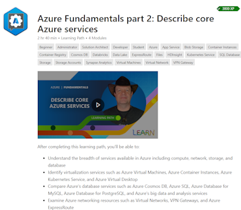 Finished Azure Fundamentals Part 2: Azure Core Services!!