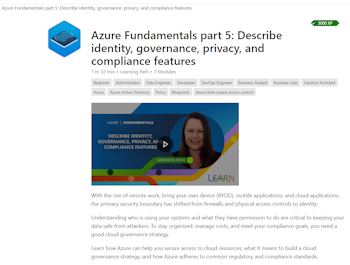 Finished Azure Fundamentals Part 5: Azure Identity, Governance and Compliance features!!