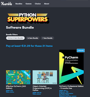 Acquired the Python superpowers 2021 bundle to support charity and learn more about Effective PyCharm 2021 and Modern APIs wth FastAPI!!