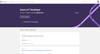 Moved forward with the 30-day Microsoft Cloud Skills challenge to learn about Azure IoT Development!