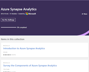 Joined the 30-day Microsoft Cloud Skills challenge to learn about Azure Synapse Analytics!