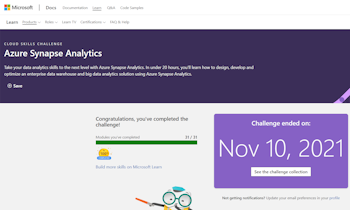 Today I completed the Microsoft Cloud Skills challenge about Azure Synapse Analytics!