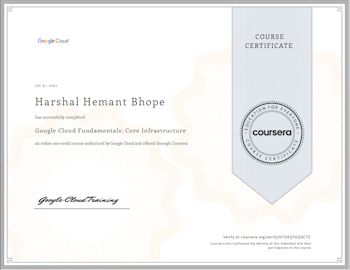Had a great time Learning the Google Cloud Fundamentals: Core Infrastructure at Coursera