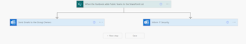 A PowerAutomate (Flow) is triggered when an item is adding to the SharePoint List. The Flow emails the Owner of the team explaining what has been done and why, it also emails IT Security informing them of the Team and Owner.