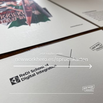 The new Limited Edition Cards are such a nice collab. Fell in love with Vidam‘s work and Sabrina crafted the very best design. And 10€ per card deck are donated to ReDI School of Digital Integration. https://newworkhero.es/spruchkarten