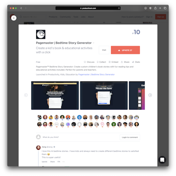 Launched the bedtime story generator on product hunt, got to #10 that day.