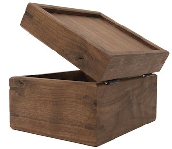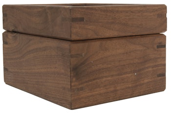Planed and sanded walnut wood; cut using a table saw, chop saw, and a Japanese saw for the joints. Hinges were the only hardware used.