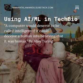 Using AI/ML in TechBio https://open.substack.com/pub/marinatalamanou/p/using-aiml-in-techbio-62c?utm_campaign=post&utm_medium=web #science #health #drugdevelopment #drugdiscovery #AI #biotech #metaphysicalcells #substack