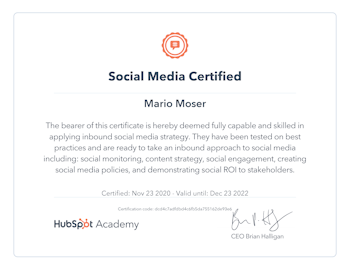 Completed the Social Media Marketing Certificate from Hubspot Academy