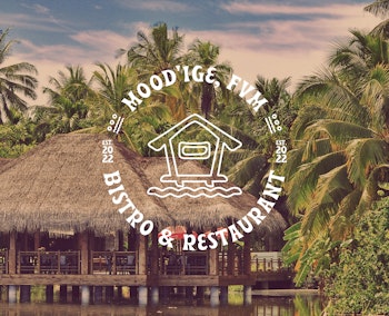 Logo design for a new restaurant on a lake. The name "Mood'ige" means a house on a lake, the which is the inspiration for the logo.