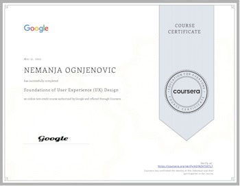 I'm happy to share that I finished Foundations of User Experience (UX) Design, Google's first course out of seven from the UX Design bundle on Coursera, with 100%.