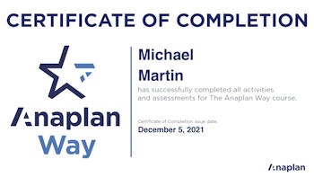 Adding Anaplan FP&A modeling to my list of data science and analytics skills.