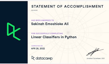 - Learned about Linear classifiers in Python, specifically logistic regression and support vector machines.