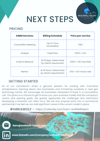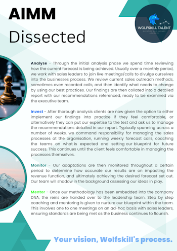Our AIMM process will highlight areas impacting business growth, invest the business model with new ideas and creatives, monitor their impact on growth over a given amount of time before mentoring business leaders to achieve consistent standards.