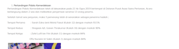 An article about me winning first place in pertandingan pidato hari kebangsaan 2019 with a winning percentage of 93.5%.