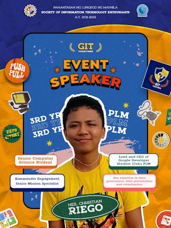 I'm a resource speaker for a GIT Workshop at my beloved school. Git Together aims to provide an engaging and informative talk on Git for code management, team coding/collaboration, and system building.