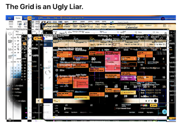 Time is our greatest gift, yet our interfaces for time are Ugly Liars. If you don't believe me, open your calendar app and ask yourself to simultaneously consider beauty.