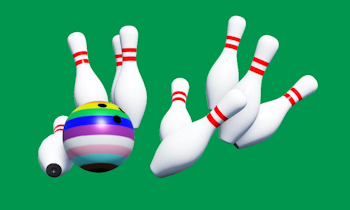 I textured a 3D bowling ball object in Blender with a pride flag design for The Lanes - a social hangout bowling alley game on ROBLOX. There are a wide variety of bowling ball designs offered in-game as cosmetics (purchasable with in-game currency) and this design will be available from June.