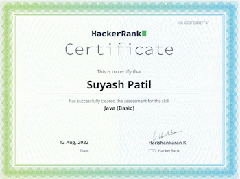 Successfully cleared the assessment for the skill - Java (Basic) on HackerRank