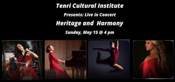 The Tenri Cultural Institute presents Heritage and Harmony Live in Concert!! Please join us on Sunday May 15th @ 4pm for an afternoon of glorious music, breathtaking dance, stunning artwork and uplifting stories!